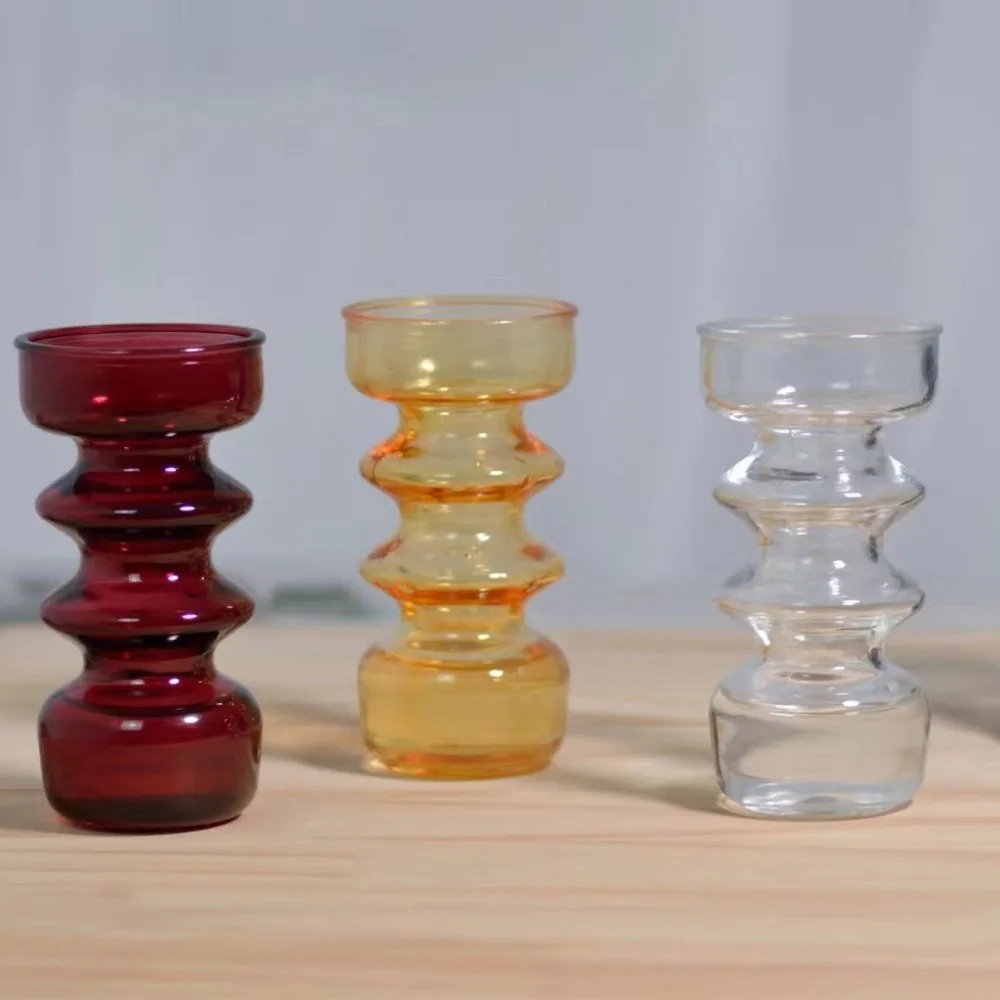 Size:See picture for detailed sizeMaterial:GlassColor:Clear Yellow Grey RedUsage:Christmas Festival Decor Wedding Party and Home Dinner Decor Vase Candle HolderNotes: Light shooting and different displays may cause the color of the item in the picture a little different from the real thing. The measurement allowed error is +/- 1-3cm.<