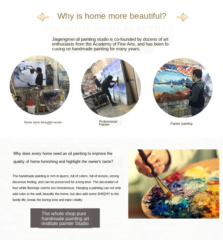 We provide abstract oil paintings, landscape oil paintings, portraits of people and animals, etc. We can paint according to the pictures you send. It is the original hand painted artwork on canvas.Modern Style Paintings. It is the 100% hand painted art work by Oil/Acrylic on canvas. Unique original artwork on canvas with texture real touch feeling.
